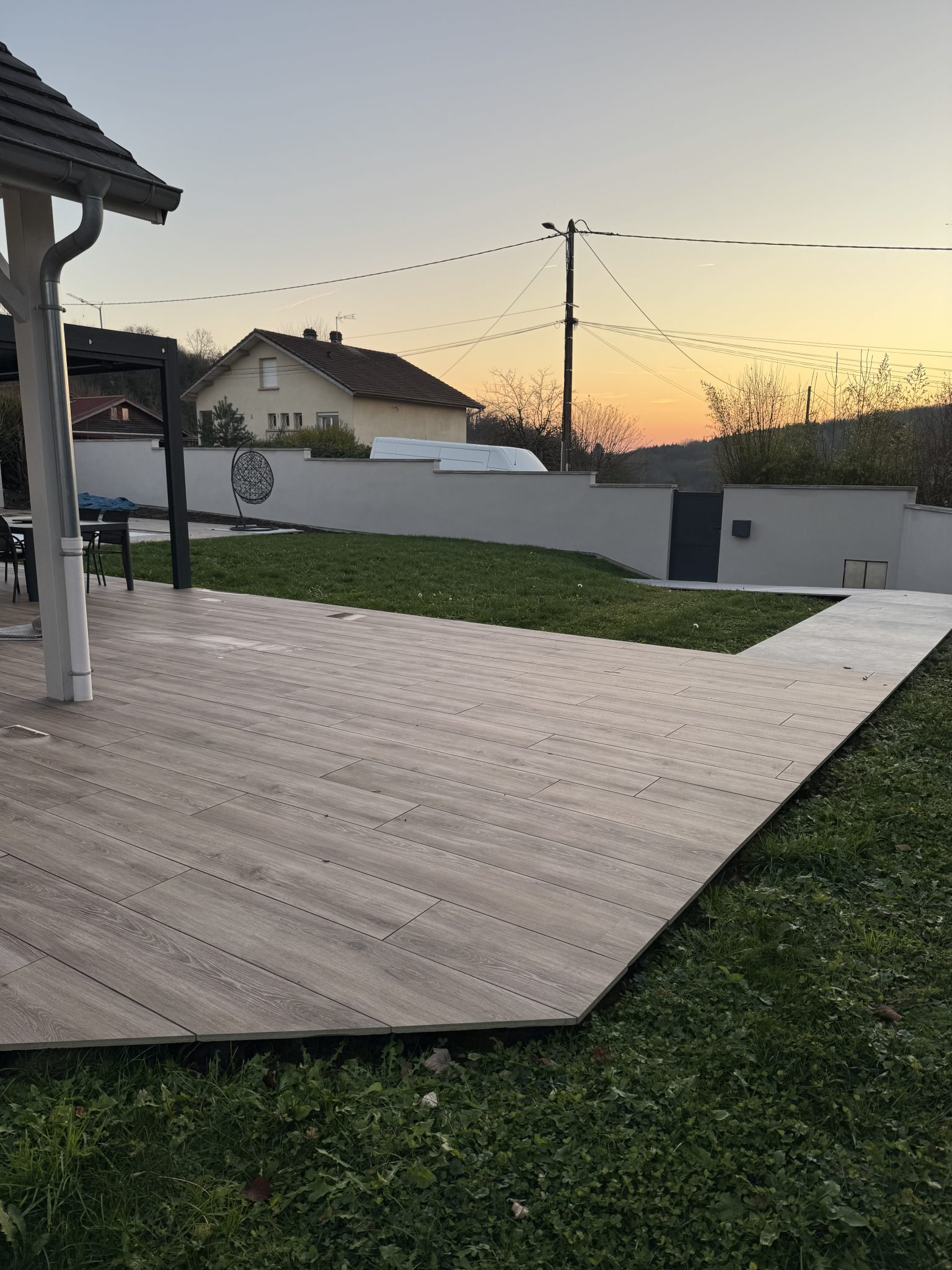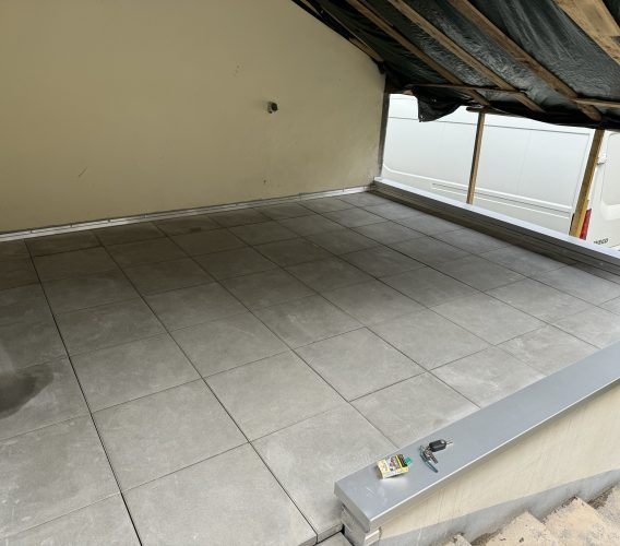 ✔ Pose de dalles béton sur plots réglables ou carrelage céramique pour une finition esthétique et résistante.